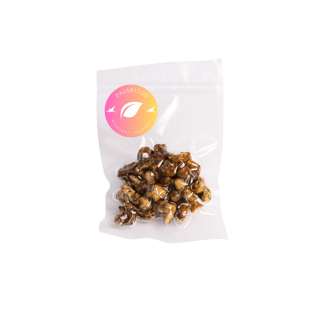 Pajaritos sind eine der zugänglichsten Trüffel, die es gibt - perfekt für Anfänger oder diejenigen, die einen leichten, geselligen Trip suchen. Sie überwältigen nicht, sondern öffnen sanft die Tür zu einem spielerischen, offenen und freudigen Zustand des Seins.